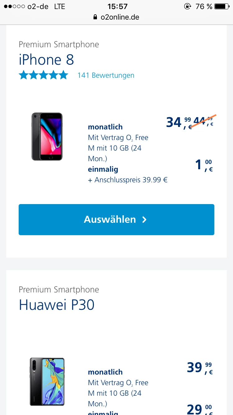 Ich kann dir den o2 Free M mit 10 GB in Kombination mit dem iPhone XR 64 GB für zusammen 53,99 EUR im Monat anbieten.