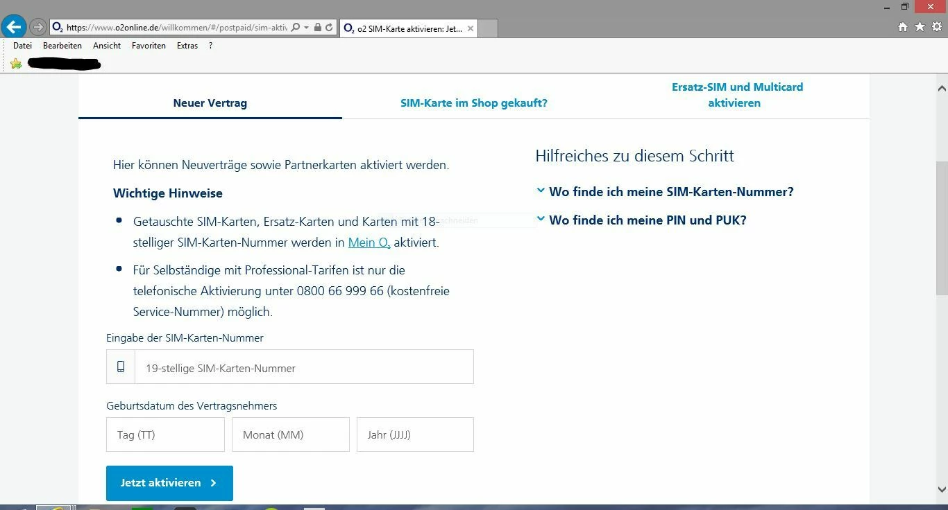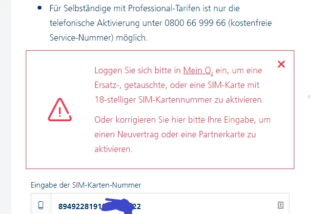 Dort wird eine 19stellige SIM-Nummer abgefragt.
