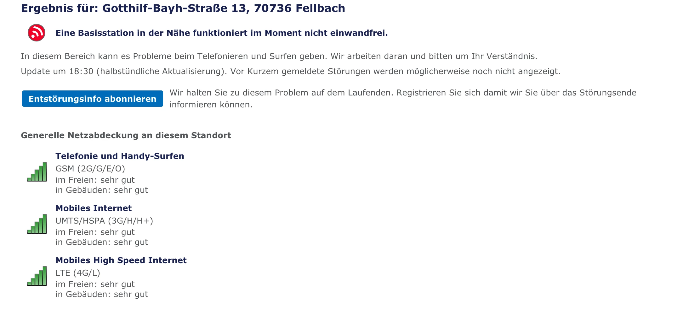 "Eine Basisstation in der Nähe funktioniert im Moment nicht einwandfrei."