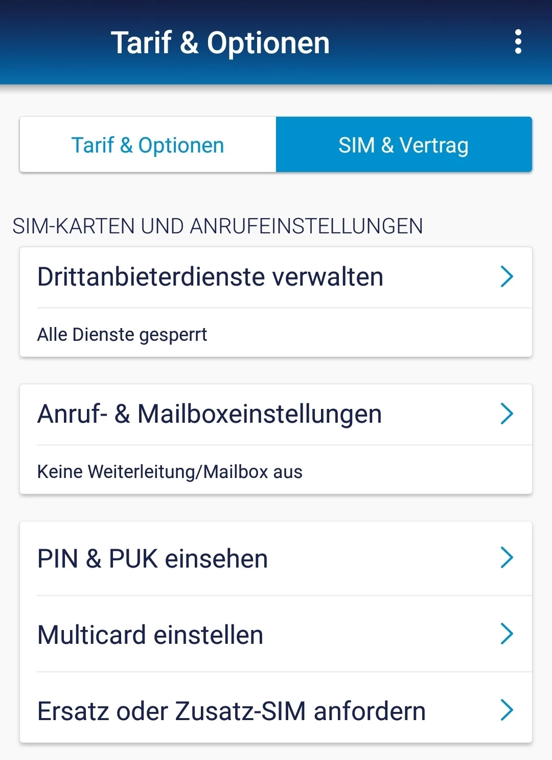 Mein o2 / Tarif & SIM Karte. Bei SIM Karte verwalten stehen Pin und puk
