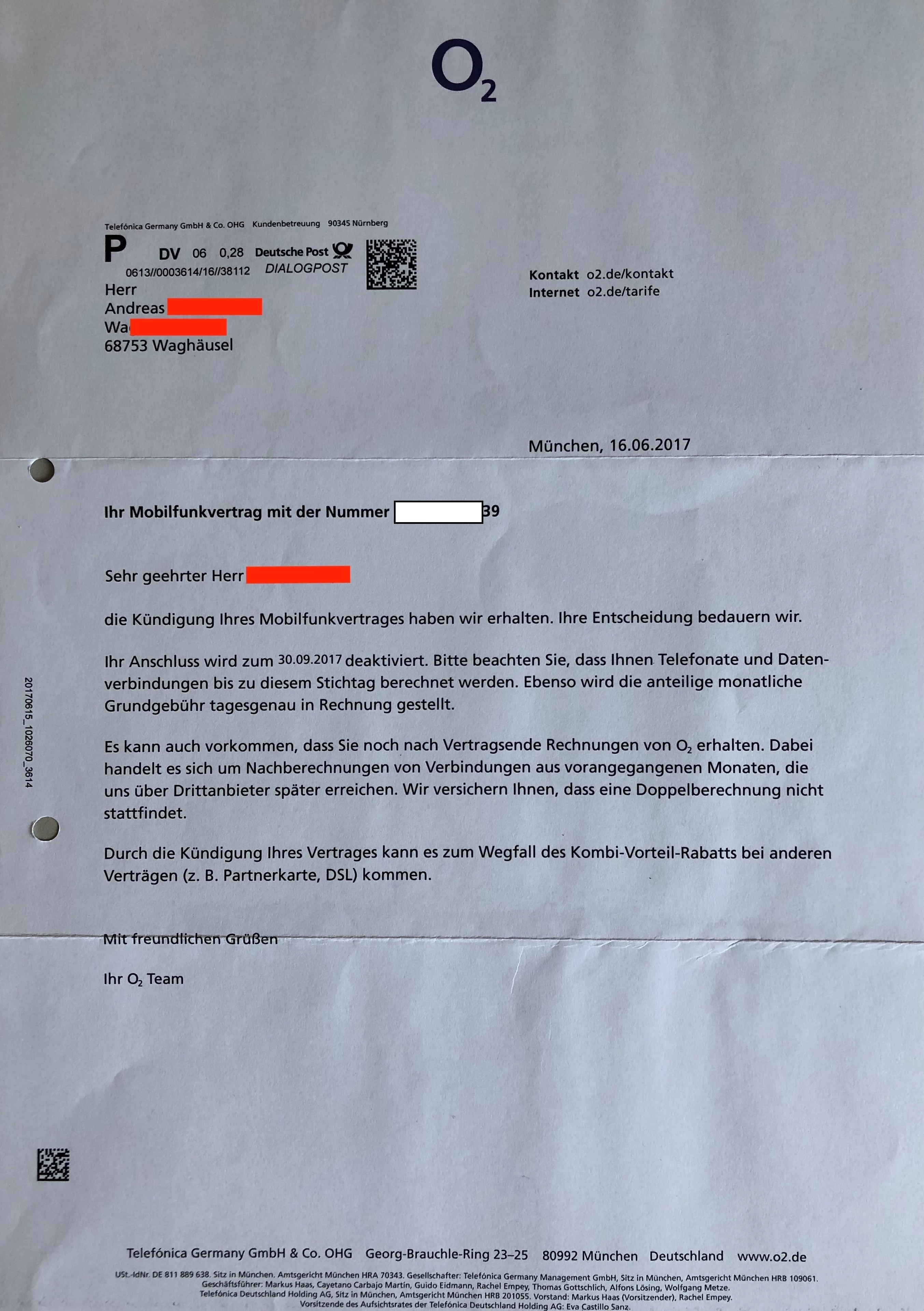 hat mich auch überhaupt nicht gestört, weil eh alles bzgl. mobilfunkvertrag effektiv gekündigt inklusive bestätigung, siehe anhänge. ich erwarte, dass wenn ich von O2 _SCHRIFTLICH_ eine kündigungsbestätigung bekomme, mir das ab dann gelinde gesagt egal sein darf/kann.