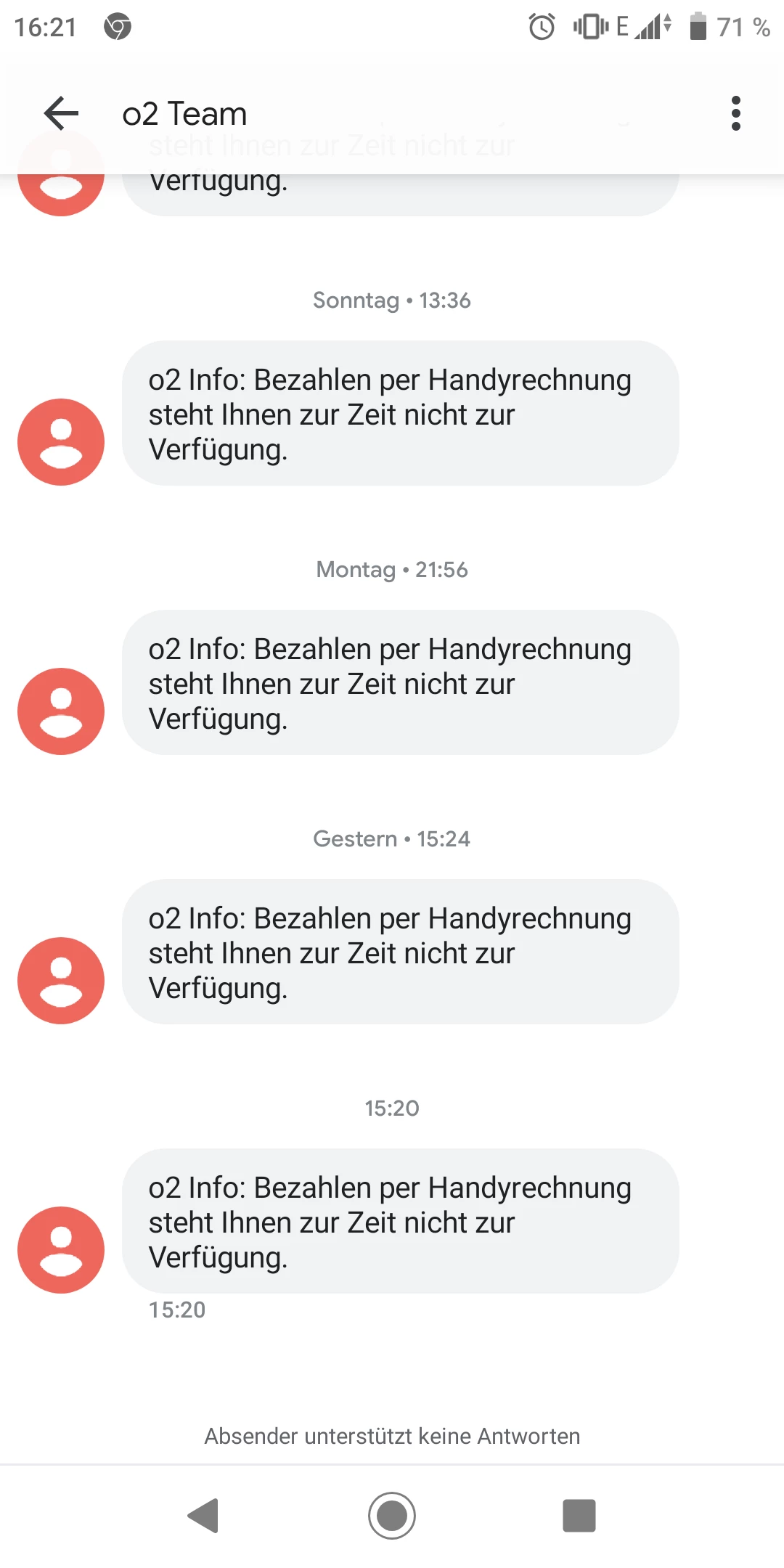 Nein habe ich nicht ich bekomme die Nachricht immer immer wieder ich kaufe nicht über handy Rechnung ein