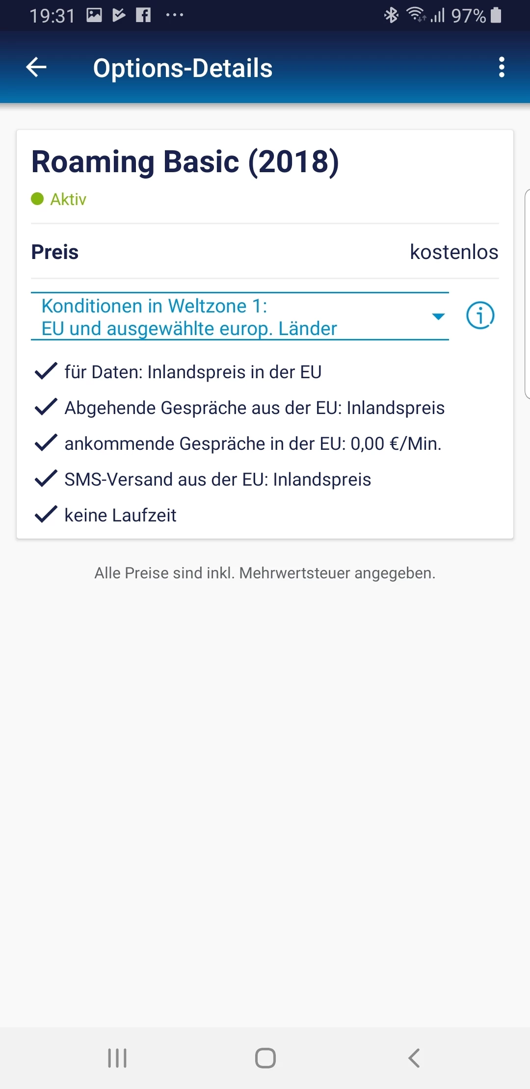 Also die Rede ist von anehmende Gespräche, ausgehende Gespräche (nach Deutschland) und natürlich auch Mobile Daten. Irgendwie habe ich das mit Roaming noch nicht so ganz richtig verstanden.