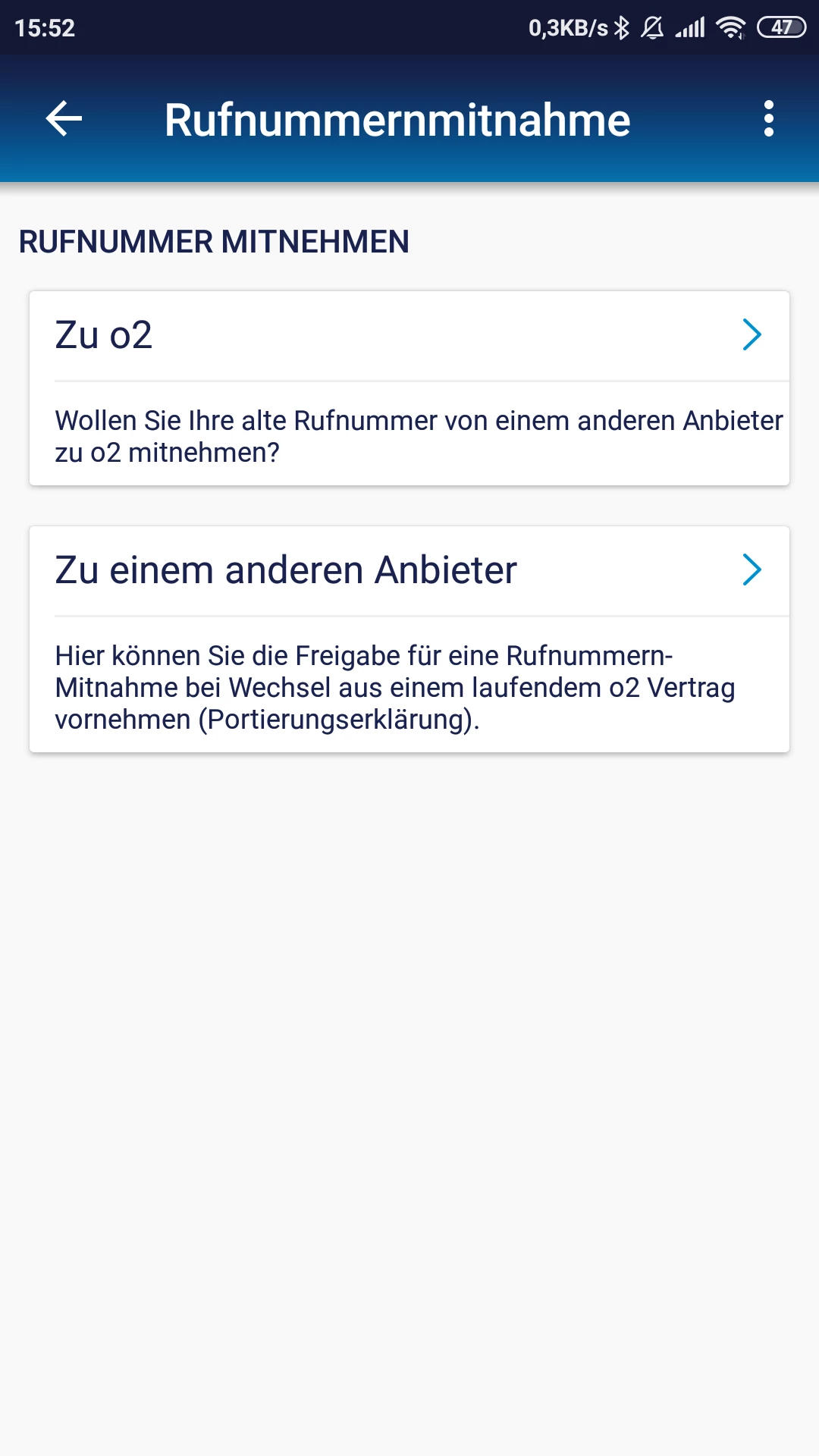 Tarif & Optionen -> SIM & Vertrag -> Rufnummermitnahme -> Zu einem anderen Anbieter
