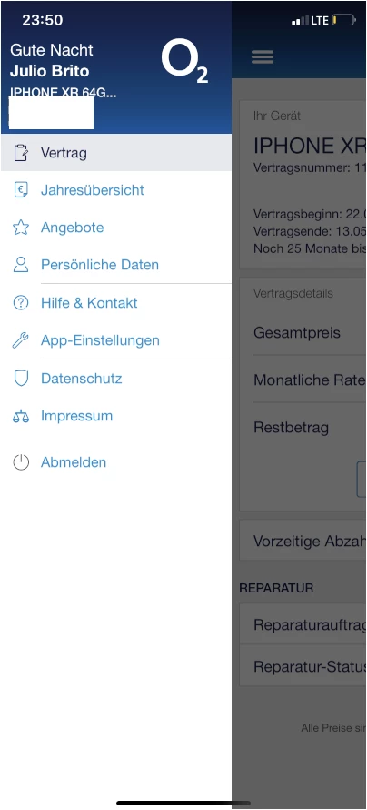 Du bist in der App mit deinem o2 my Handy Vertrag angemeldet.