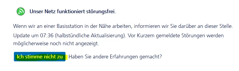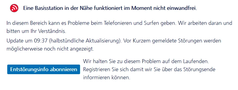 Um auf dem Laufenden zu bleiben, abboniere am Besten die Entstörungsinfo, die auf dem blauen Button angezeigt wird, wenn du selbst einen Live-Check durchführst.