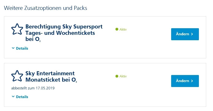 Was du in Mein o2 siehst ist die Berechtigung das Sky Supersport Tagesticket zu buchen. Gebucht ist lediglich das Sky Entertainment Monatsticket.