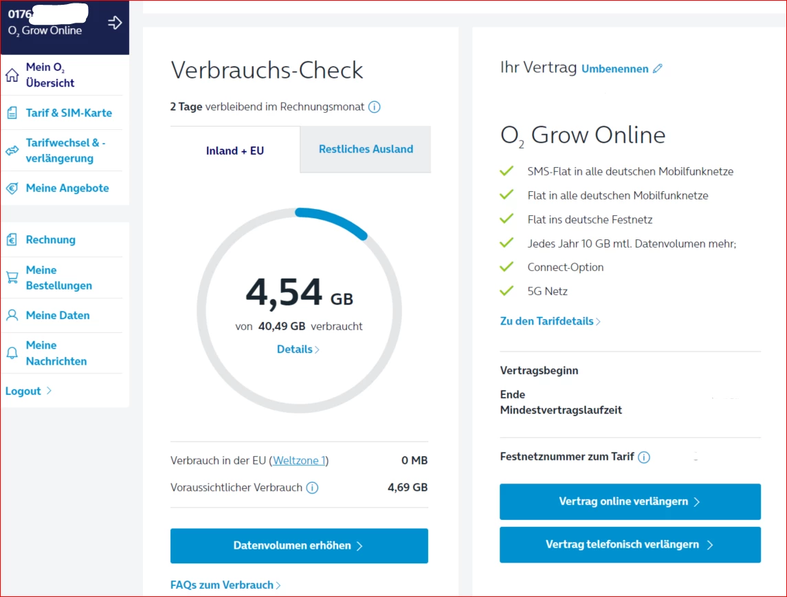 Wie sehe ich mein verfügbares Internet für mein Handy mit Vertrag
