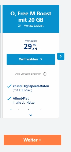 Der M Boost kostet ja regulär 34,99 im Monat. Als Neukunde, wenn ich die 6 Monate Grundgebühr verrechne auf 24 Monate nur 26,25 abzgl. 5 Euro Kombirabatt = 21,25