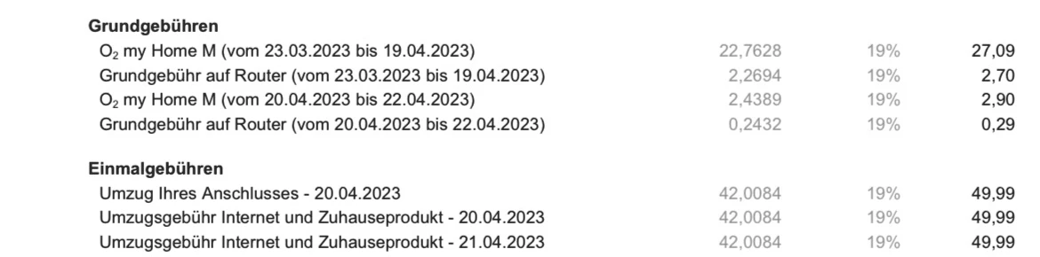 Ich hab gerade die neue Rechnung meines WLANs geöffnet. Mir wurde der Umzug dreimal berechnet also 150€ mehr, mir wurde aber 2x telefonisch im Kundenservice mitgeteilt, dass es sich um Einmalgebühren von 49,99€ handelt.