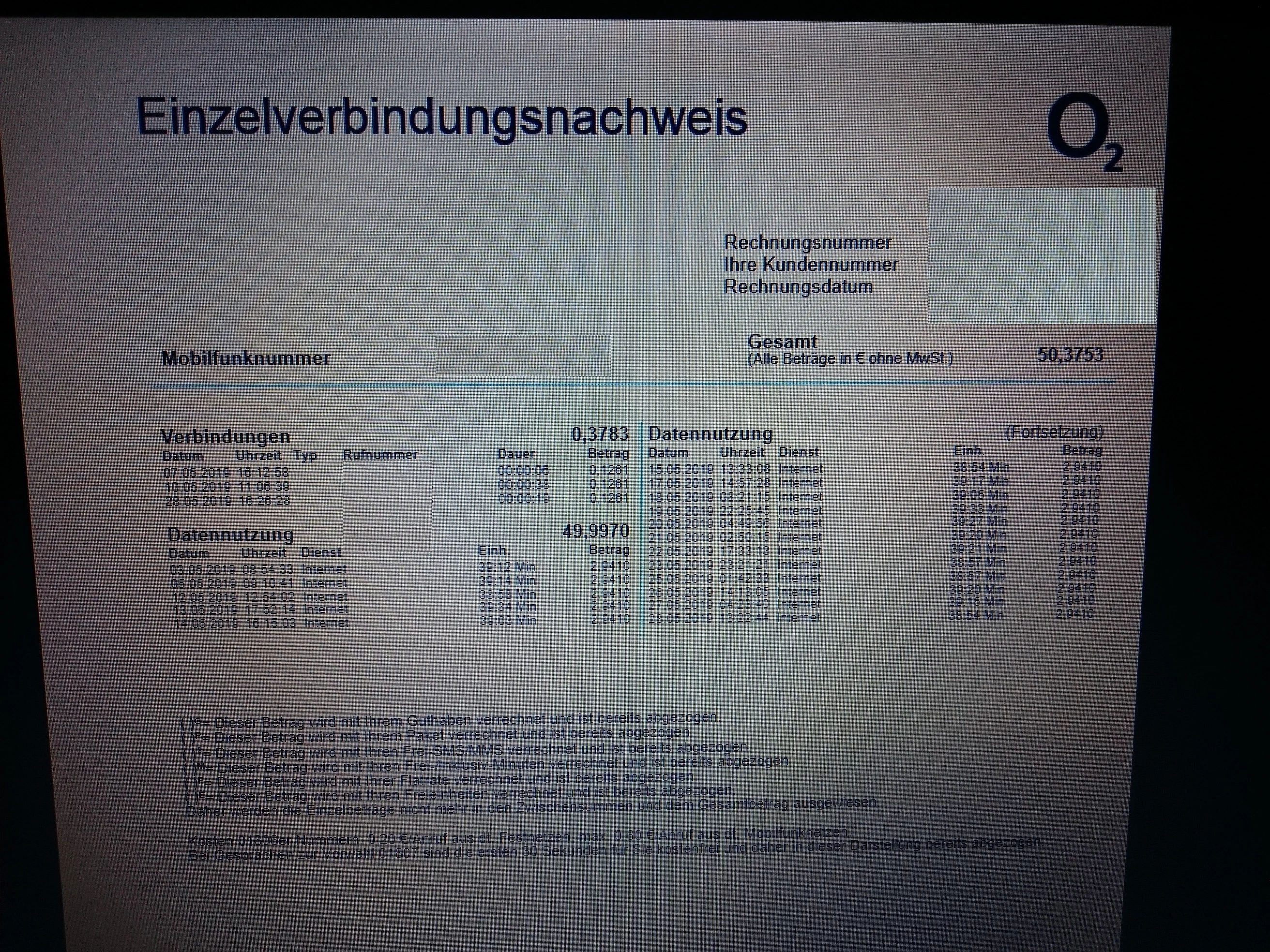 c) es keinen Hinweis gibt, das Du keine Daten gezogen hast. Eher im Gegenteil - täglich 40 Minuten zu alten Tarifpreisen ist nun mal teuer. Dabei glaube ich gerne, das das unbeabsichtigt war. Die Rechnung deutet auf Deckelung (Tagesflat) hin.