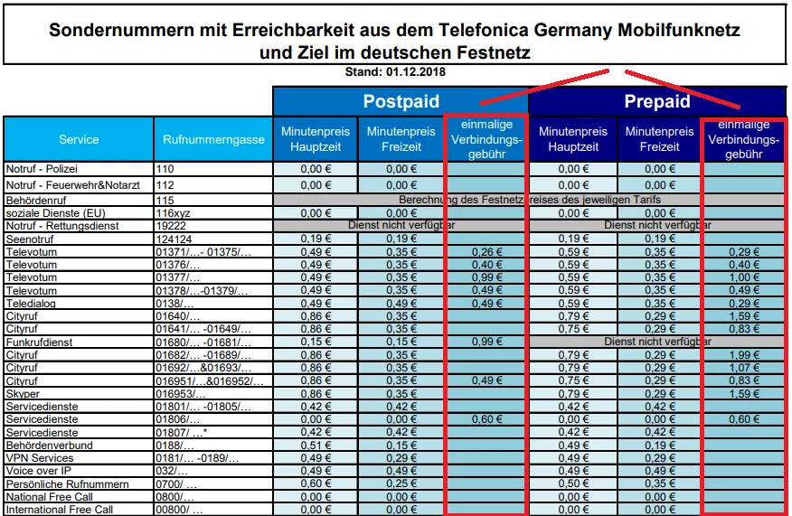 Mit Anrufkosten können auch einmalige Verbindungskosten gemeint sein.