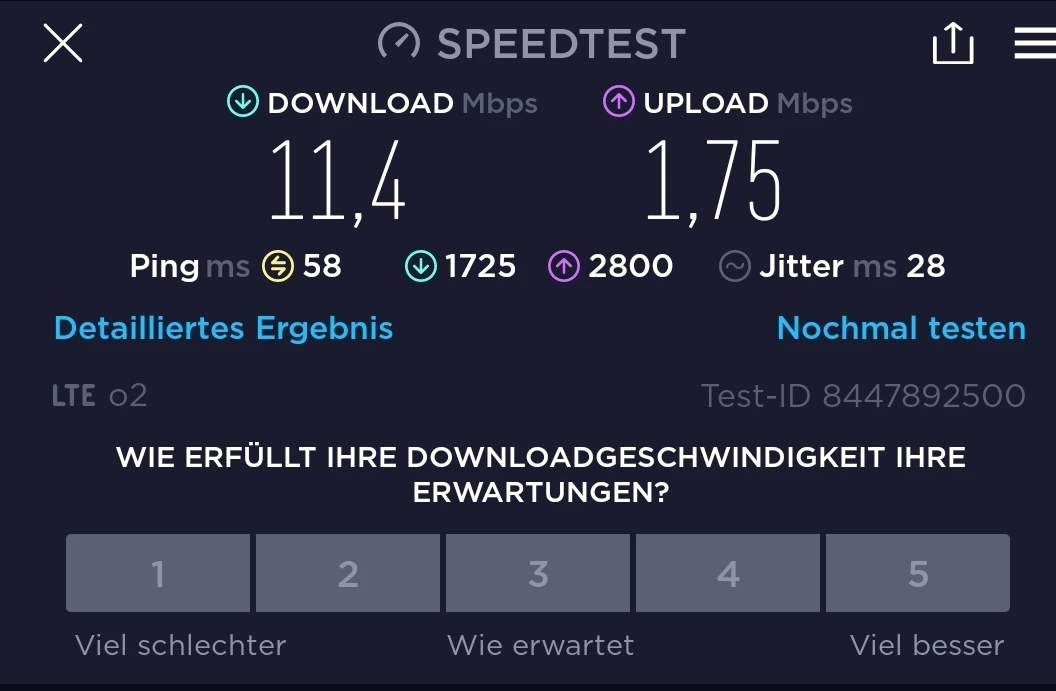 zumindest an dieser Adresse sieht man sehr hohe Belastungswerte im LTE-Datennetz, was bereits eine Erklärung für diese Werte wäre. Wenn dies der Grund sein sollte, müsstest du in den späten Abendstunden meist sehr viel bessere Werte erreichen können. In Stuttgart Mitte ist es je nach Ort ähnlich: Mehr zum Hauptbahnhof haben wir Überlast und eine Störung an einer Station gemeldet; das Verhalten dort könnte also gleich sein. Dein Tarif hatte vorher keine Begrenzung wie z.B. ein Unlimited Smart, ich habe dennoch testweise dein Volumen auf 0 gesetzt. Sag gerne Bescheid, ob dies ggf. eine Änderung brachte.