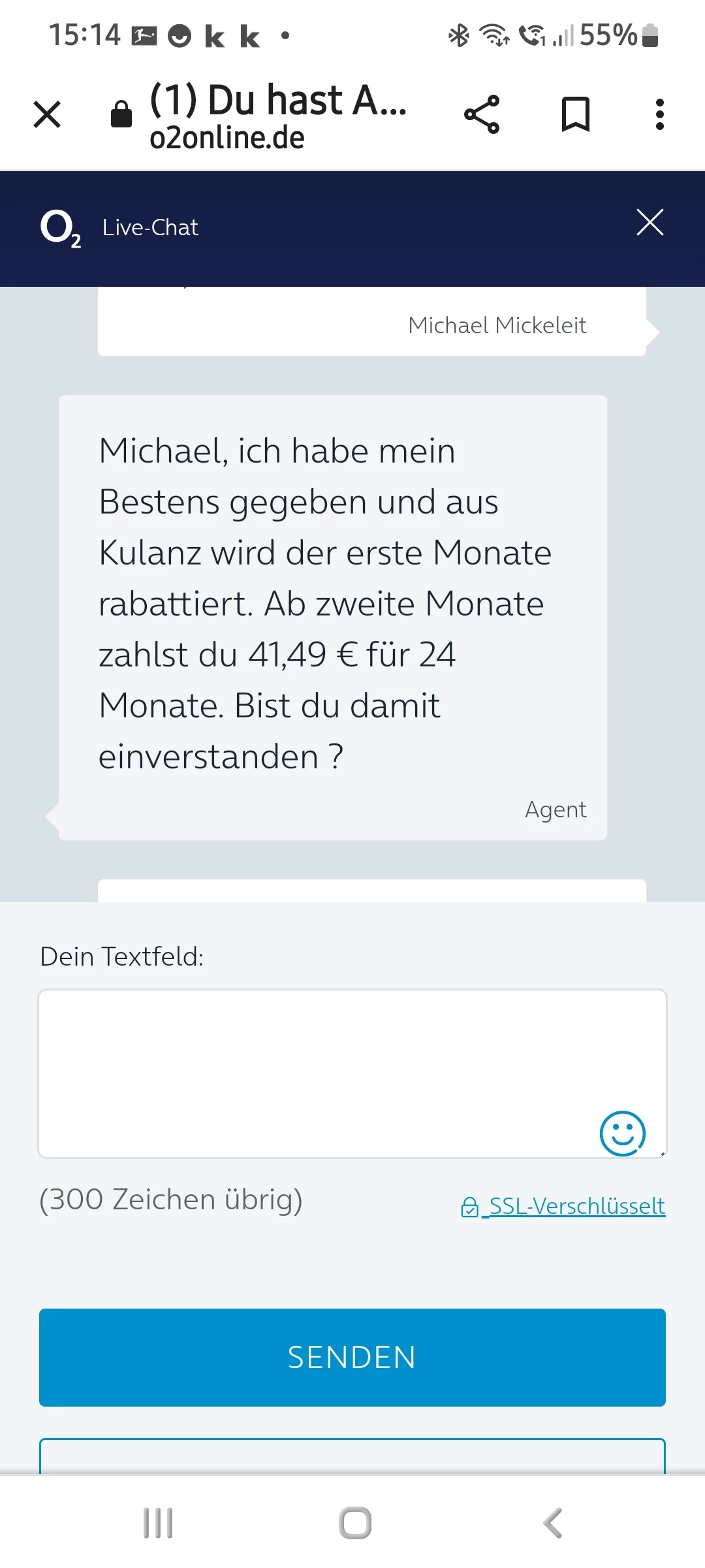Sorry, den Namen des Mitarbeiters habe ich eben entfernt. Habe ich zu spät gesehen und war auch keine Absicht. Aus den Screenshots soll ersichtlich werden, dass mir ein Rabatt versprochen wurde, welcher aber nun nirgends ersichtlich ist. Das ist wohl keine Art die Verträge in dieser Form abzuschließen oder sehen Sie das anders?