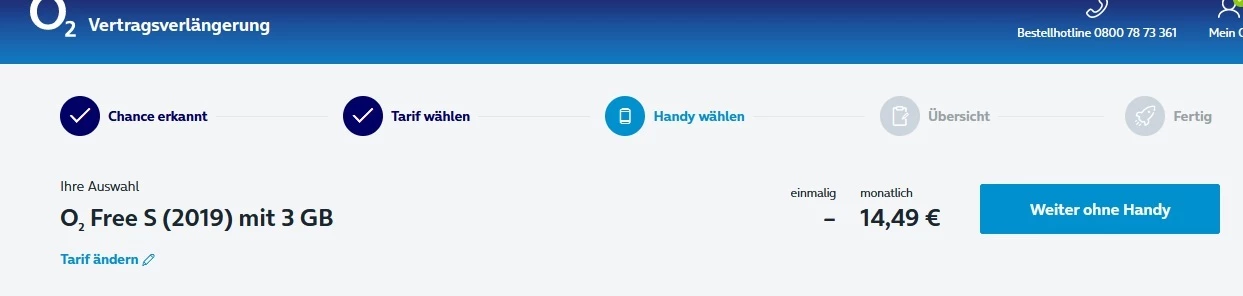 Neuer Tarif wurde gewählt,nächster Schritt “ohne Handy” und dann kommt immer die selbe Meldung: