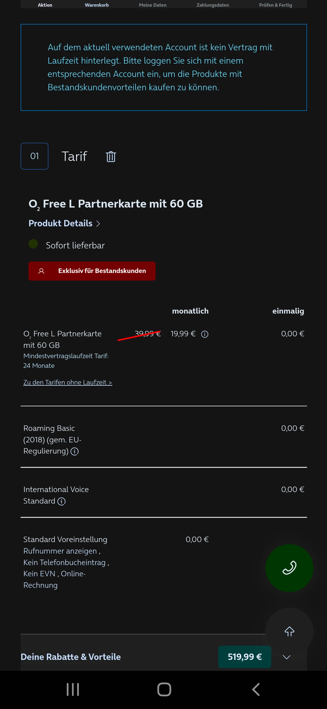 bei dem Angebot, welches du dir ausgesucht hast, ist ein bereits bestehender Vertrag notwendig. Es handelt sich bei deiner Auswahl um einen Partnertarif. Die dortigen Konditionen gelten nur dann, wenn du bereits einen Tarif bei uns besitzt.