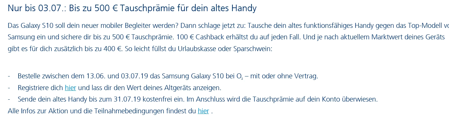 Ich habe Online ein Angebot gefunden (o2 Free M Boost Handy5) Samsung S10 in weiß