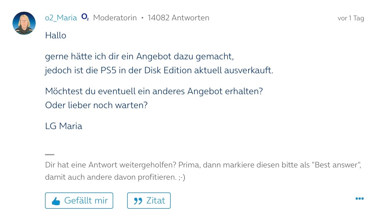 wir erstellen dir gerne ein Angebot für eine Vertragsverlängerung. Bitte beachte, dass die Bearbeitung hier über die Community ein paar Tage in Anspruch nimmt.