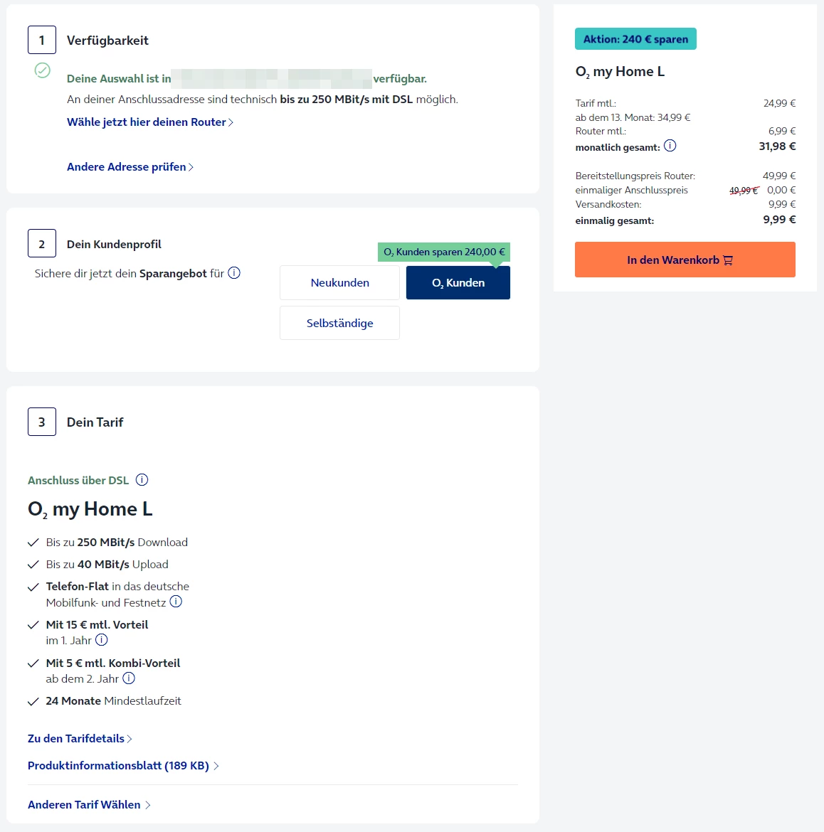 Neuer Vertrag würde dann das “O2 my Home L 250MBit/s” Paket sein.