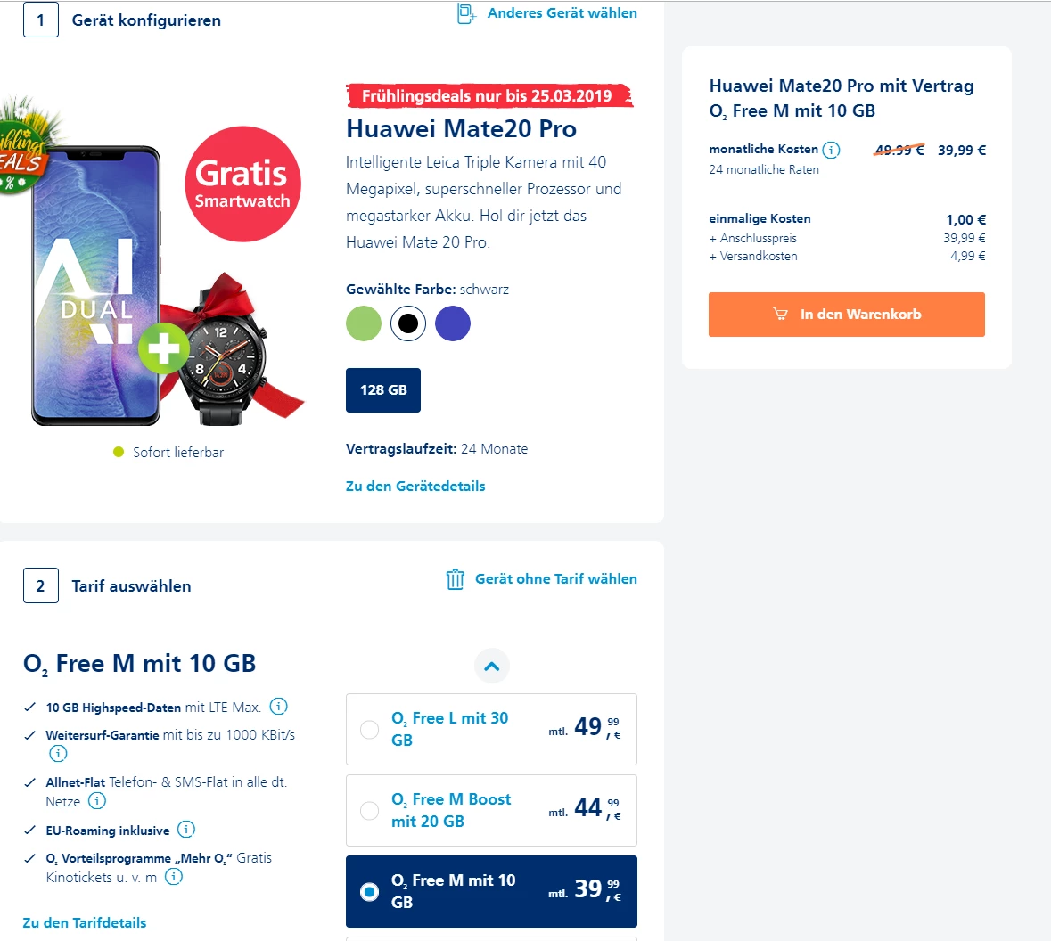 Über die Homepage von o2 gibt es auch keine besseren Konditionen. Dort zahlt man dann den Tarif plus mtl Raten fürs Handy und ist ruckzuck bei ~ 60 € mtl.