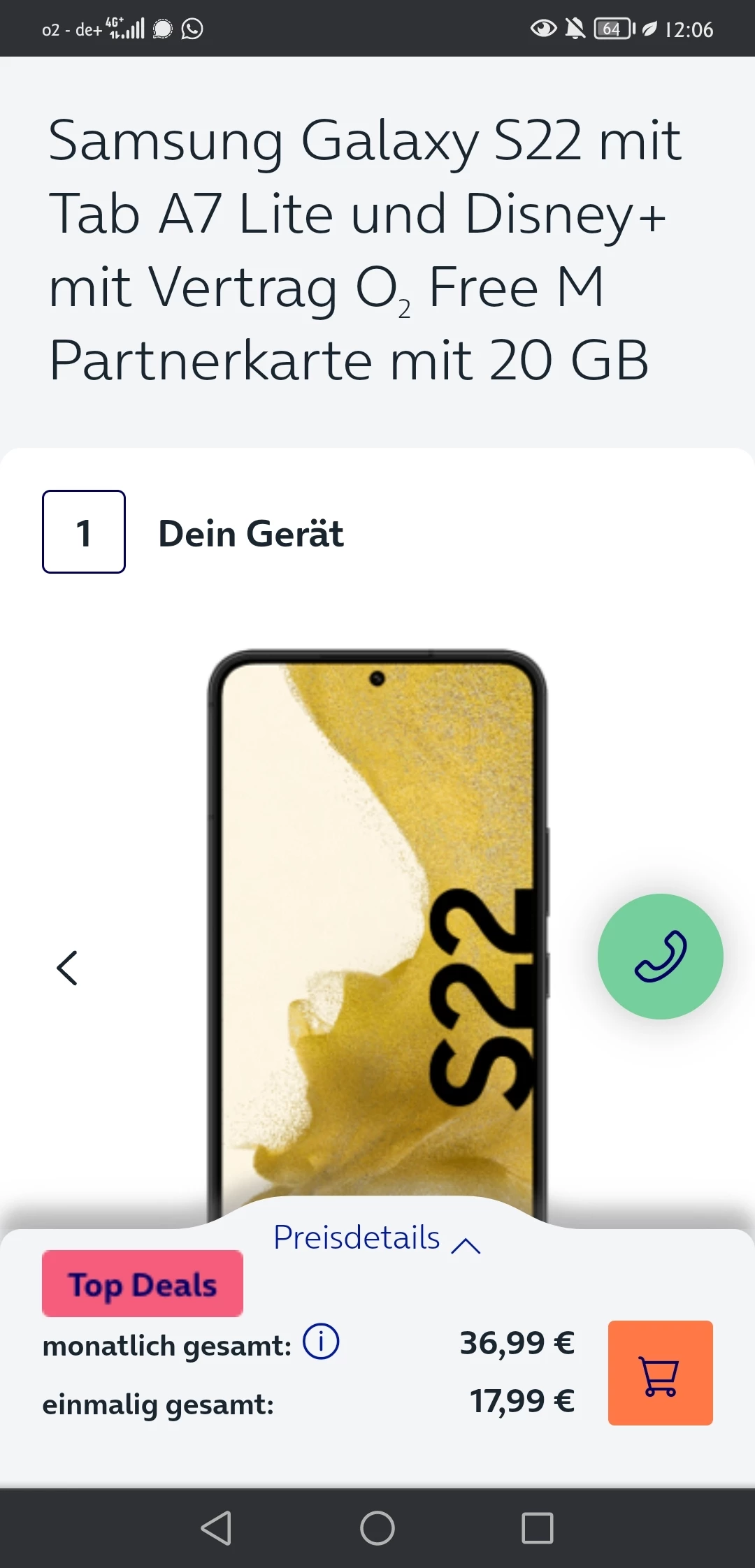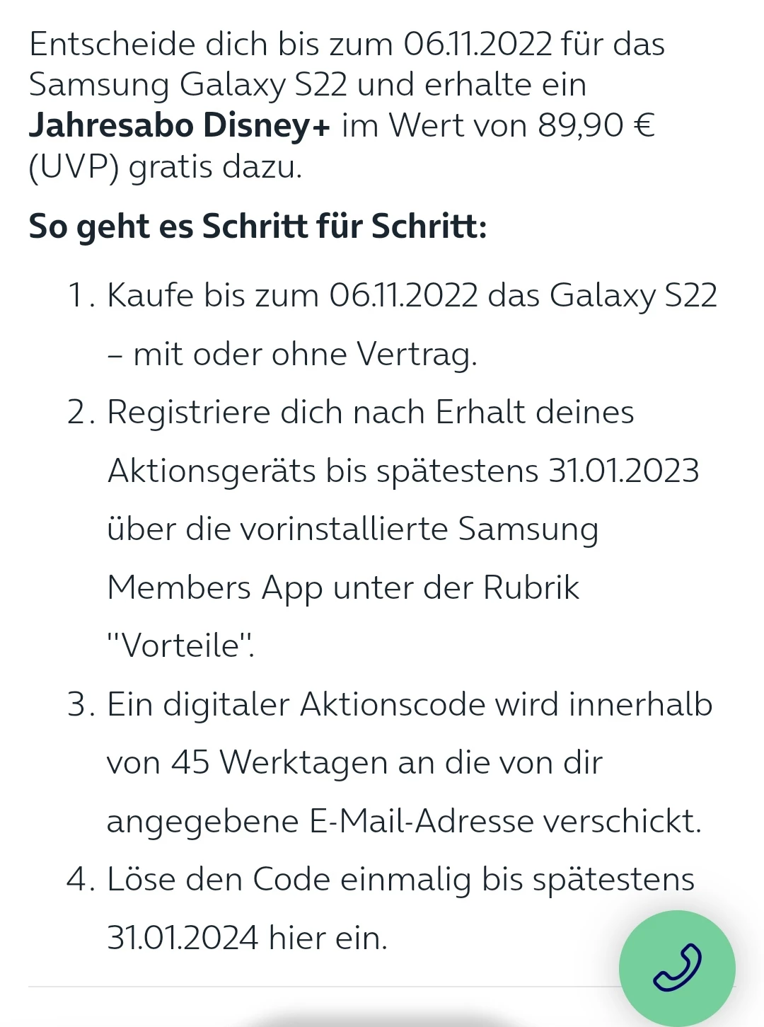 Mir wurde daraufhin mein Vertrag mit 10GB und dem Samsung S22 für 29,99€/Monat angeboten. Also 7€ weniger, dafür kein Tablet, kein Disney+ und keine 20GB.