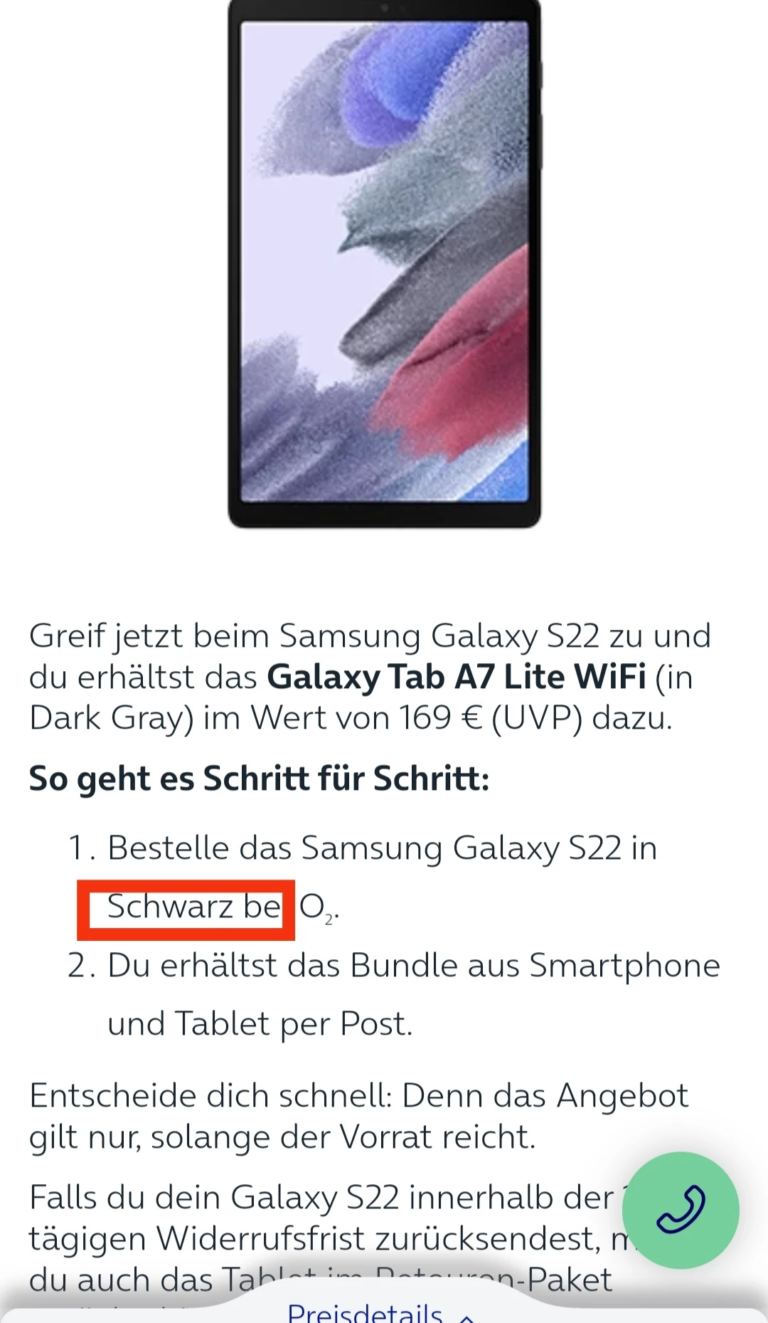 Das Tablet als Zugabe gilt nur für Bestellung des S22 in schwarz