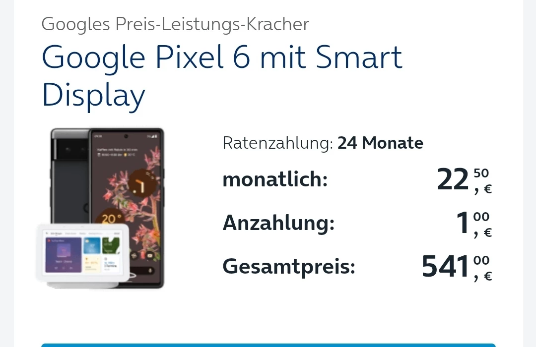 Google Pixel 6 - O2 Blue All in M - 19,99 €