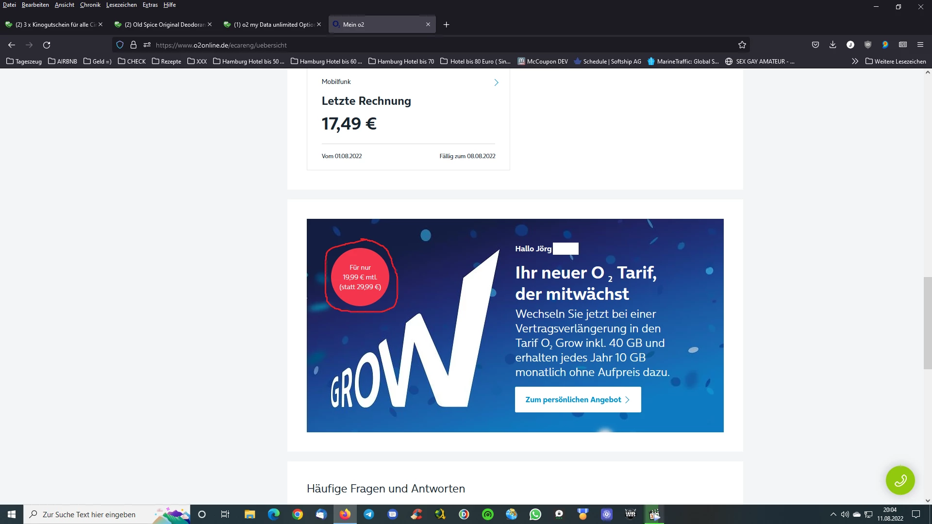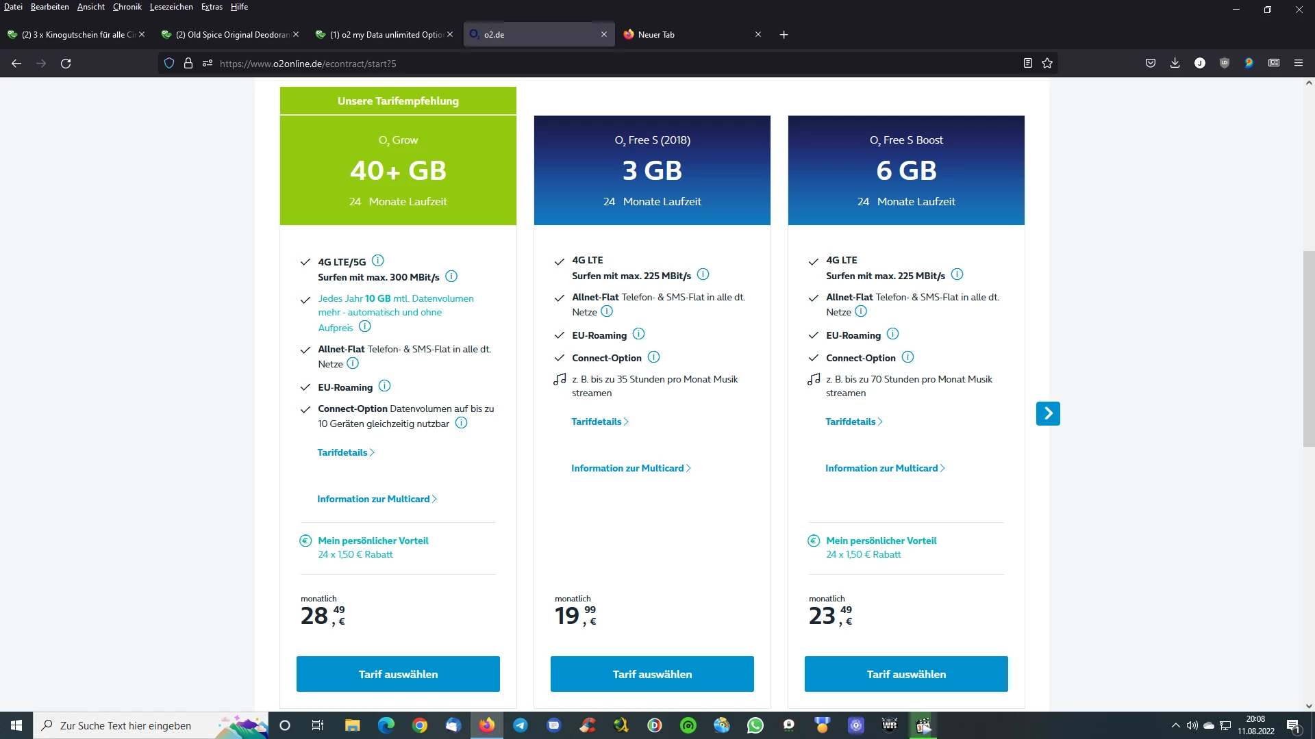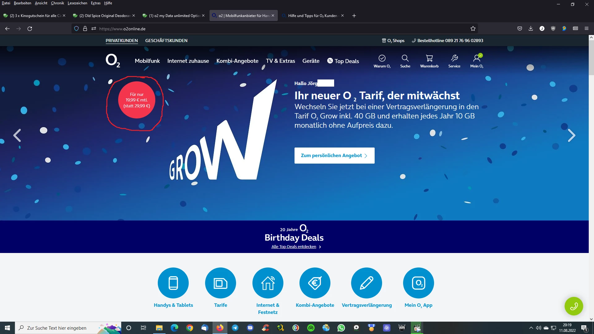 Mir wurde auf der Website doppelt angezeigt O2 VVL zu O2 Grow für 19,99 Euro.