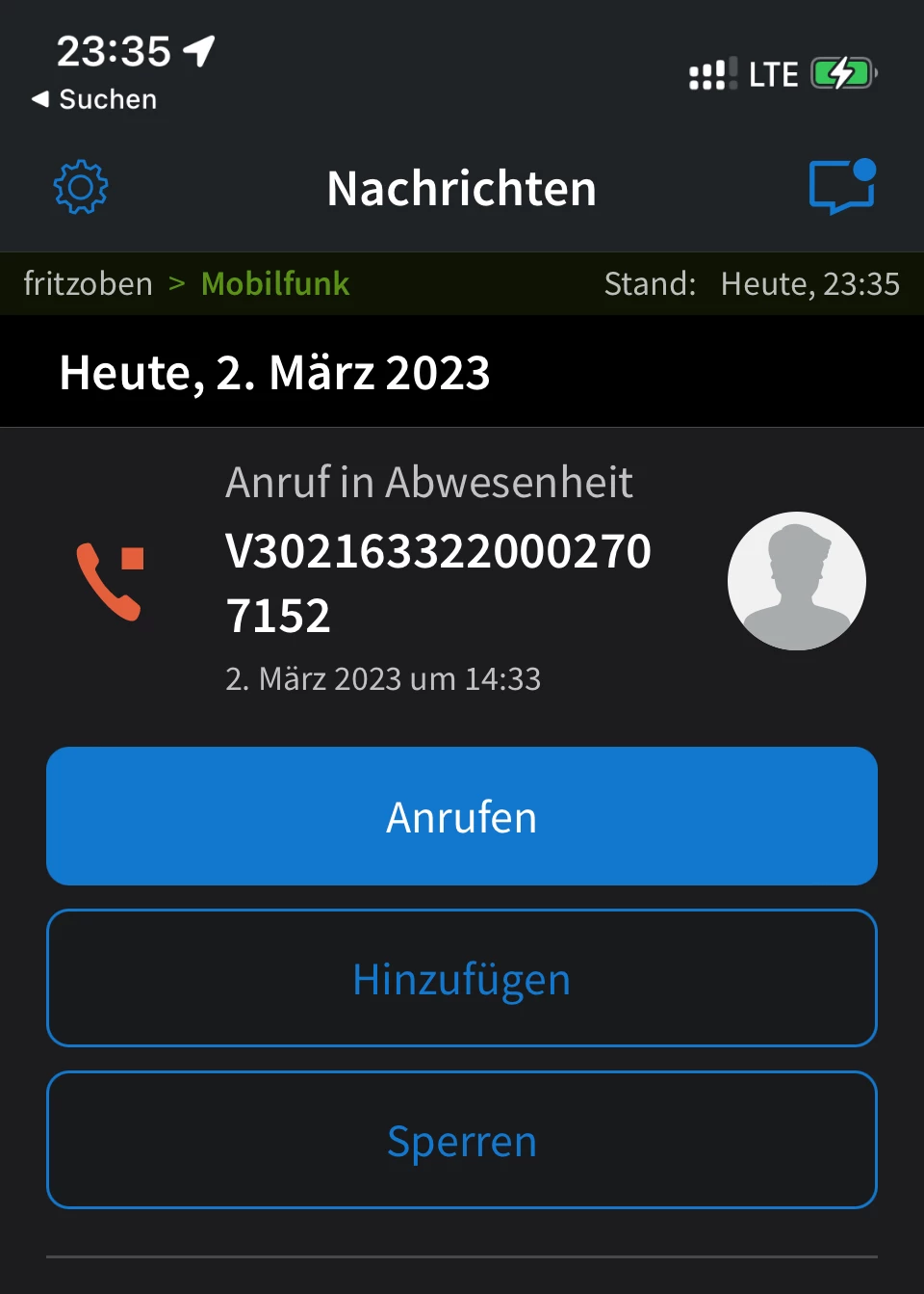 Habe ich so aber auch noch nicht gesehen. Gab es weitere Anrufe?
