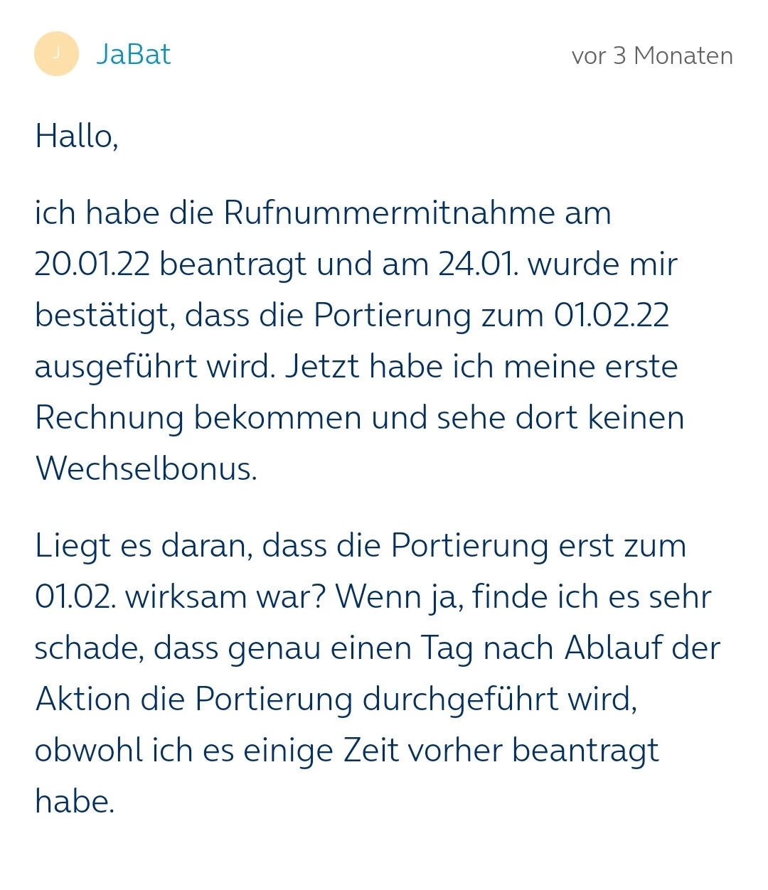 Magst du uns nochmal schreiben wann die Rufnummerportierung durchgeführt wurde?