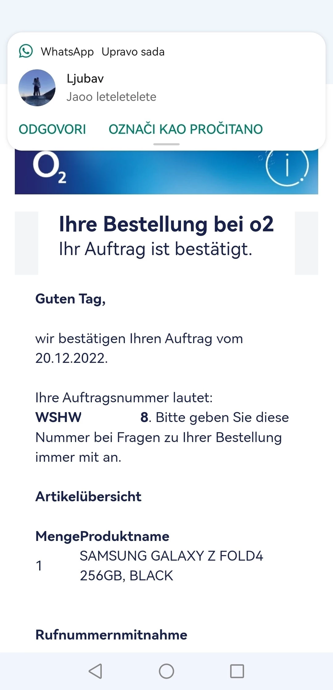 ich habe am 20.12 uber die o2 Seite ein samsung fold 4 bestellt