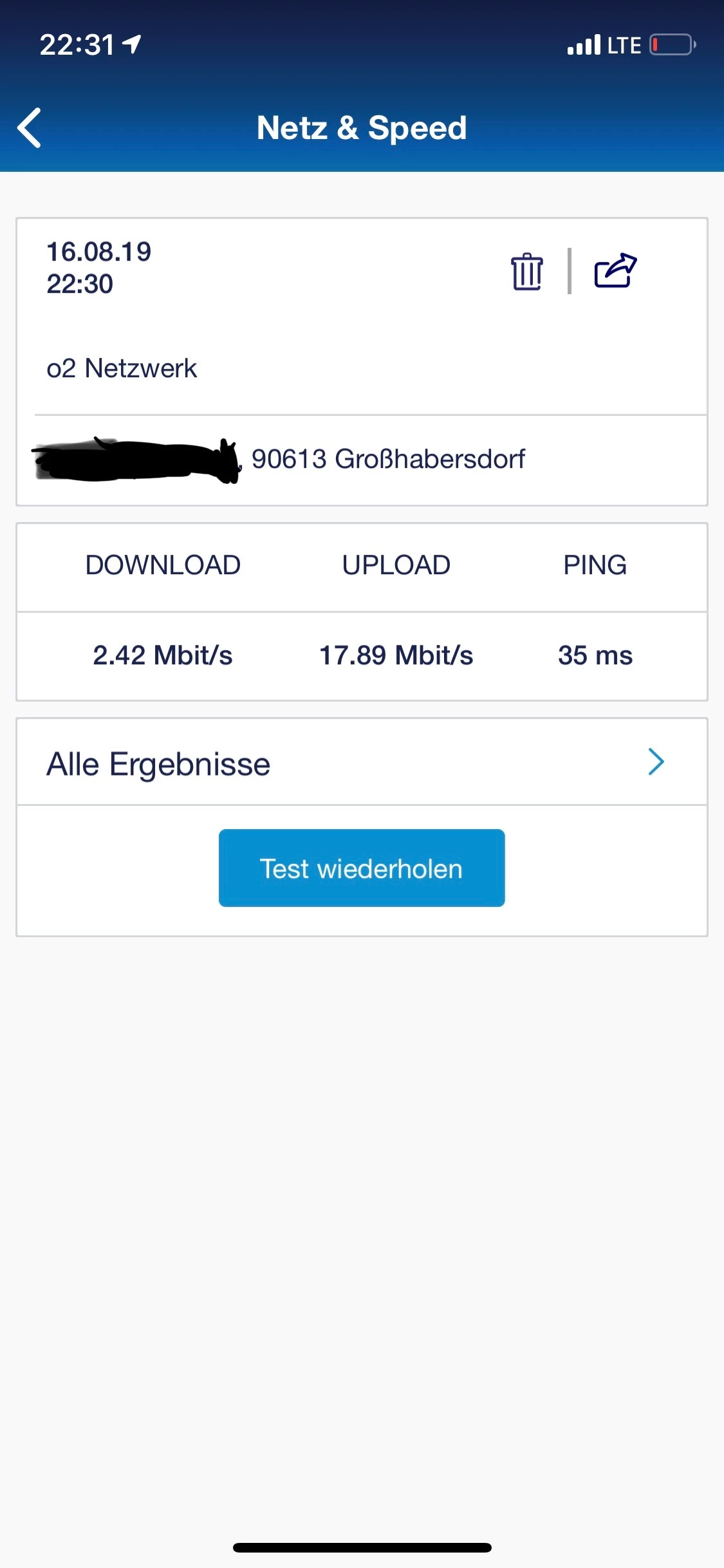 Bei mir geht seit einigen Tagen so gut wie gar nichts mehr trotz vollem O2 LTE Empfang. Anfangs hatte ich noch nachweislich ca 30 mbits im Download und ca 20 mbits im upload. Was da schon wenig war ( vorher war ich bei Telekom und da hatte ich am selben Ort ca 50 mbits im download und 25 mbits im upload) aber jetzt sind es nur noch 2,42 mbits im down und 17,89 im upload? Was ist da los? Eine Störungsanfrage hat nichts ergeben. Handy ist iphone x