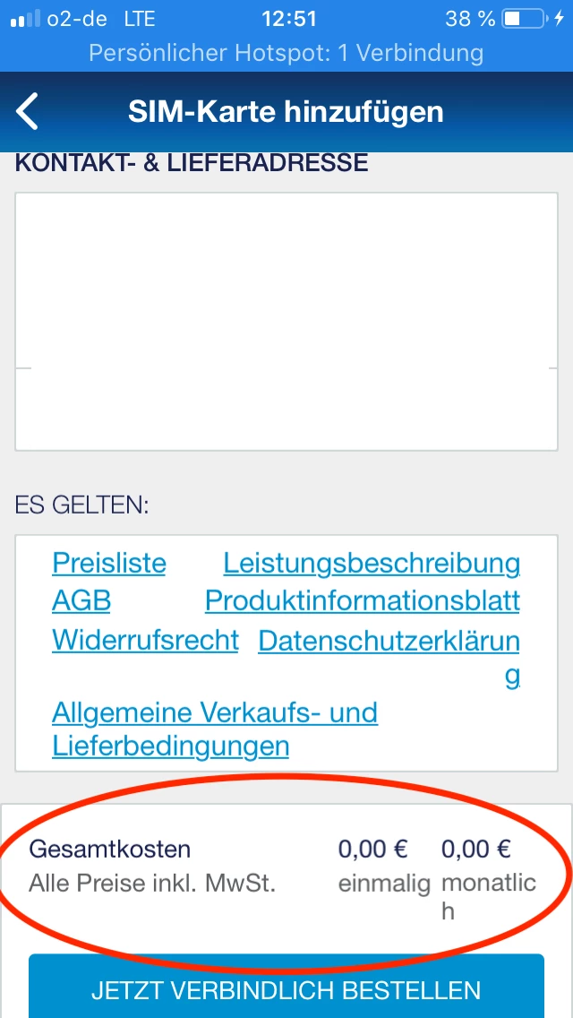 Laut App sollten mir zusätzliche Kosten von 0,-€ enstehen.