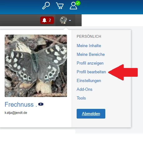 Beim zweiten Versuch bin ich direkt auf "Profil bearbeiten"-->Avatar: