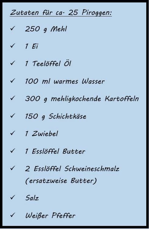 Selber ausprobiert habe ich das Rezept noch nicht, ich plane einen Testlauf für meine allerersten Piroggi am Wochenende. Hoffentlich wird das was... 😊