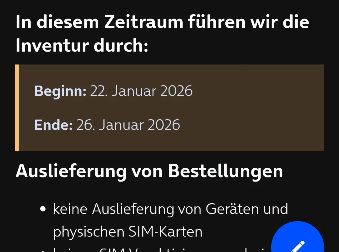 Naja, auch am Donnerstag (22.1.26) war eben schon Inventur und da wird nicht versandt, wie im EP hier nachlesbar: