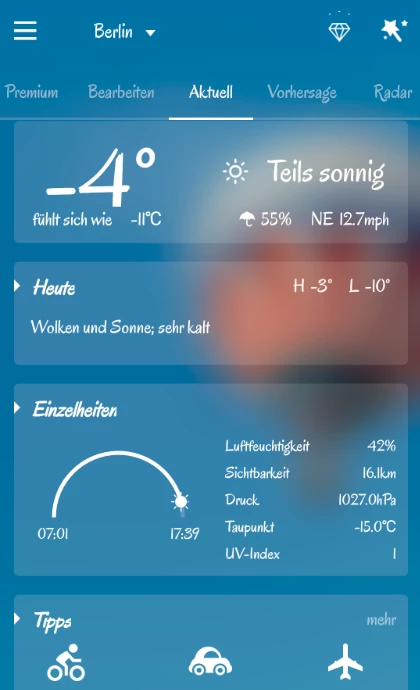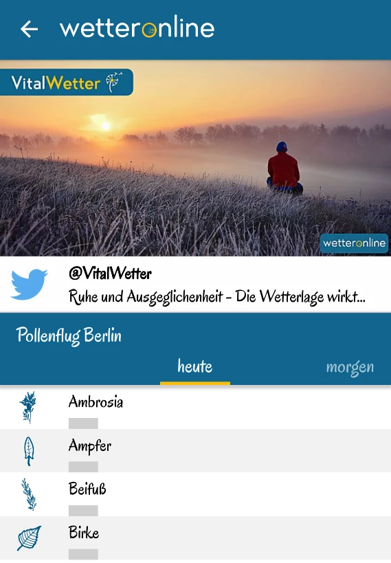 Ob man nun eine große Auswahl an Widgets benötigt oder Allergiker ist und deshalb vielleicht auf eine Pollenflugprognose angewiesen ist, muss jeder für sich selbst wissen. Ich finde beides sehr charmant und es wertet die Apps - ebenso wie ein Live-Wetter-Ticker oder nette Videos von Wetter-Reportern ja auch irgendwie auf.