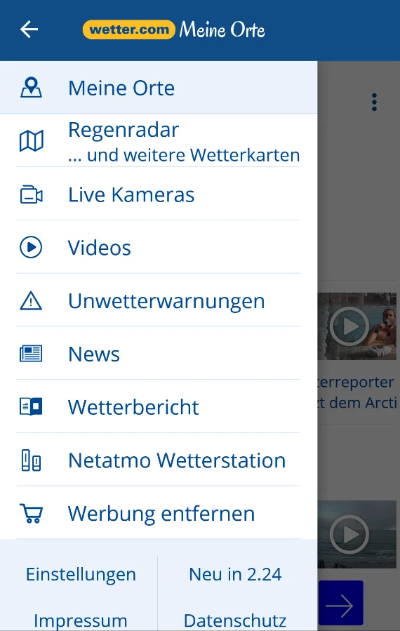 Außerdem ermöglicht die App den Zugriff auf Live-Wetter-Cams (z.B. vom Hamburger Hafen, dem Fernsehturm in Berlin oder von der Frankfurter Skyline) und es gibt animierte, regionale Wettervideos aus dem eigenen Studio sowie Unwetterwarnungen per Push-Meldung und auf einer Unwetterkarte, Prognosen der Regenwahrscheinlichkeit inklusive Niederschlagsmenge, zur gefühlten Temperatur, zum Luftdruck und vielem mehr.