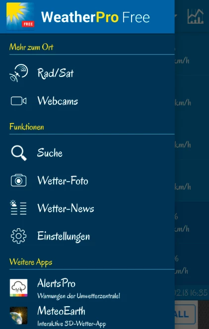 Die Wetter-App WeatherPro Free kommt mit einer 7-Tage-Vorhersage, einem Regenradar, animierten Satelitenbildern und Wetter-News daher. Die 7-Tage-Wettervorhersage hat für die jeweils kommenden 3 Tage zudem eine Aufschlüsselung über die stündlichen Daten. Darüber hinaus bietet sie Vorhersagedaten zu Temperatur, Wind, Regen und noch einigem mehr. Über Unwetter informiert die App weltweit bis zu 3 Tage im Voraus.