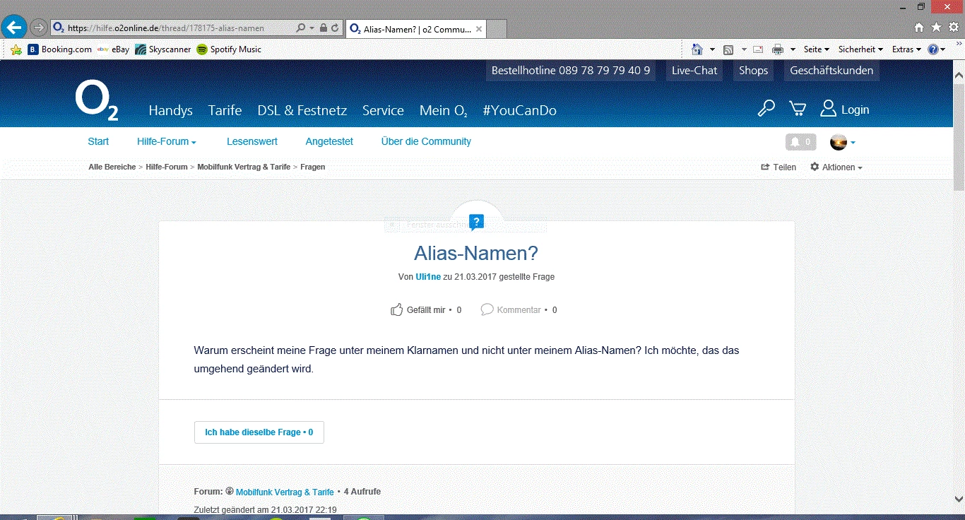 Warum erscheint meine Frage unter meinem Klarnamen und nicht unter meinem Alias-Namen? Ich möchte, das das umgehend geändert wird.