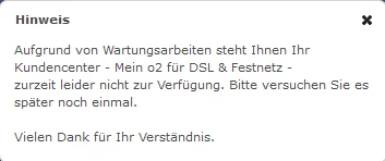 Aufgrund von Wartungsarbeiten steht Ihnen ihr Kundencenter nicht zur Verfügung!