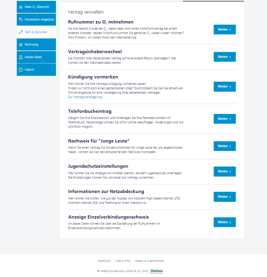 o2.de-->Meino2-->Tarif & Optionen-->Vertrag verwalten.