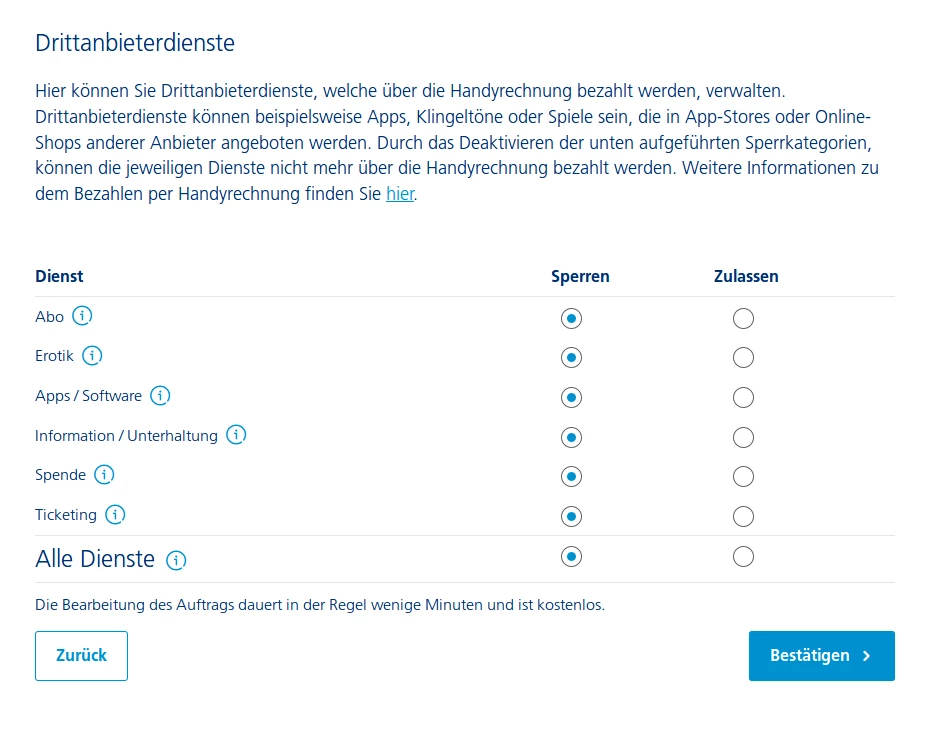Bist du ein Prepaid Nutzer, dann musst du die Drittanbietersperren über die Kundenbetreuung setzen lassen