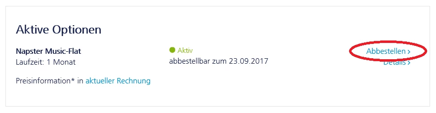 auch du kannst die Napster Music Flat ganz einfach selber über das Online-Portal abbestellen: Mein o2 > Tarif & SIM-Karte > Tarifdetails: