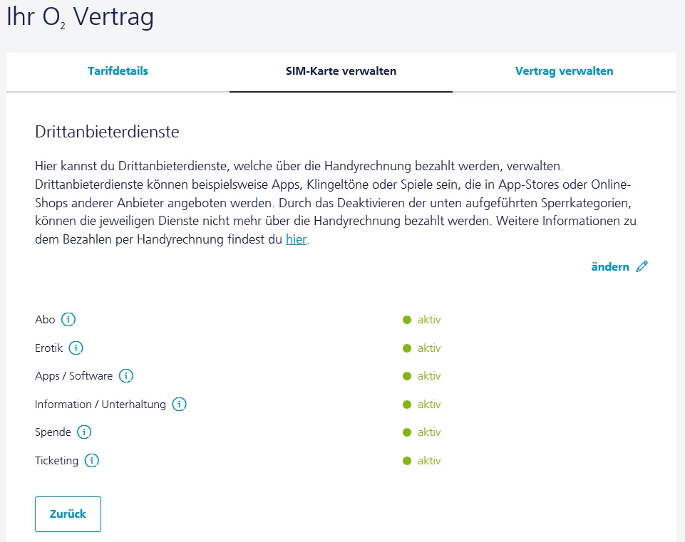 Deine Drittanbietersperren kannst du auch ganz einfach online selber verwalten: Mein o2