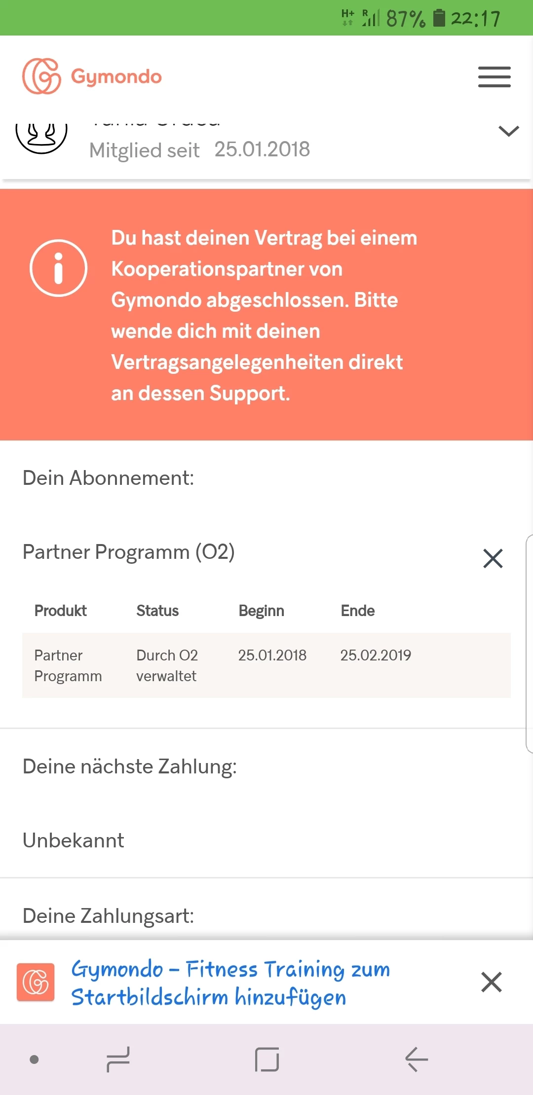 Unter Abos wird mir nur O2 Music angezeigt, jedoch nicht Gymondo. Könnt ihr mir noch anderweitig helfen??