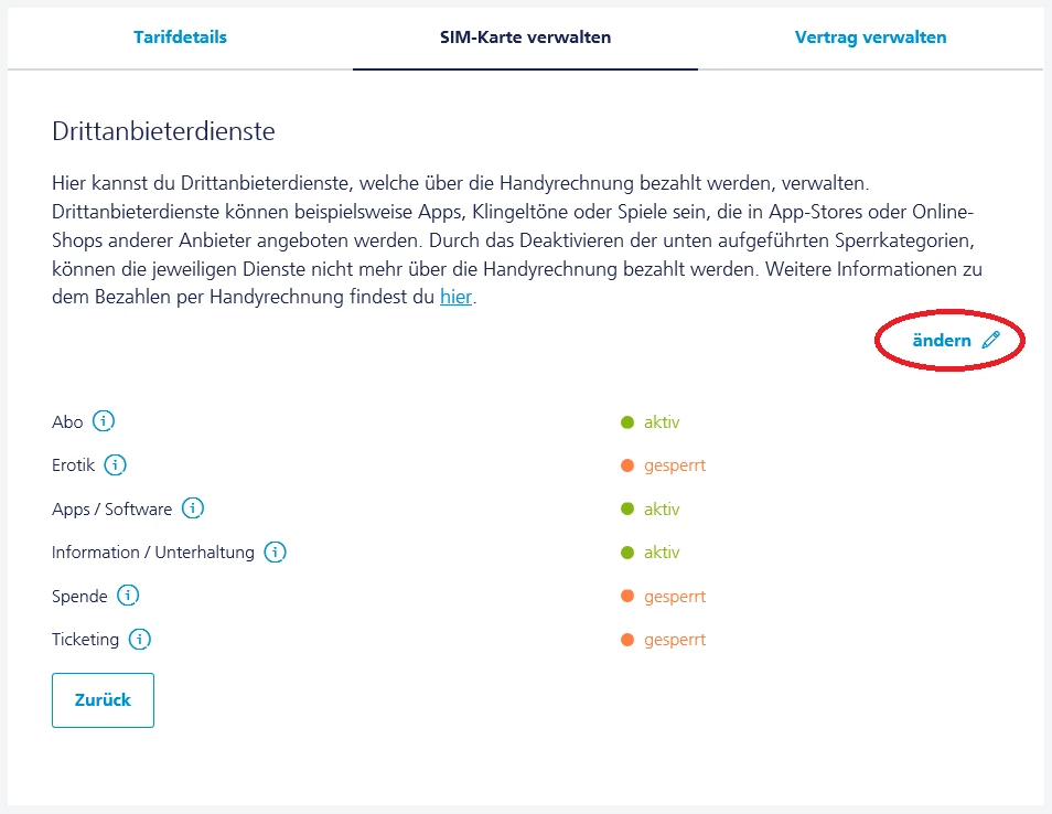 Tarif & SIM-Karte > SIM-Karte verwalten > Drittanbieterdienste
