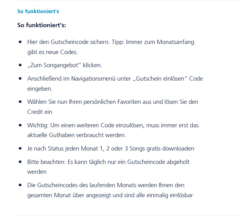 und dann zur Songauswahl und dann nur noch den Punkt bei "Credit einlösen" und das wars dann auch schon