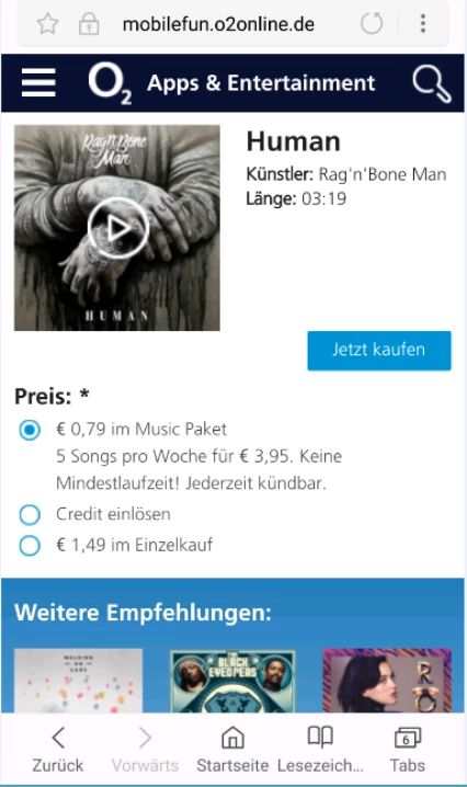 Dort klickt man dann auf "Zum Songangebot" und landet dann auf der mobilefun.o2online.de. Dort dann erst den Gutscheincode einlösen und dann zur Songauswahl und dann nur noch den Punkt bei "Credit einlösen" und das wars dann auch schon