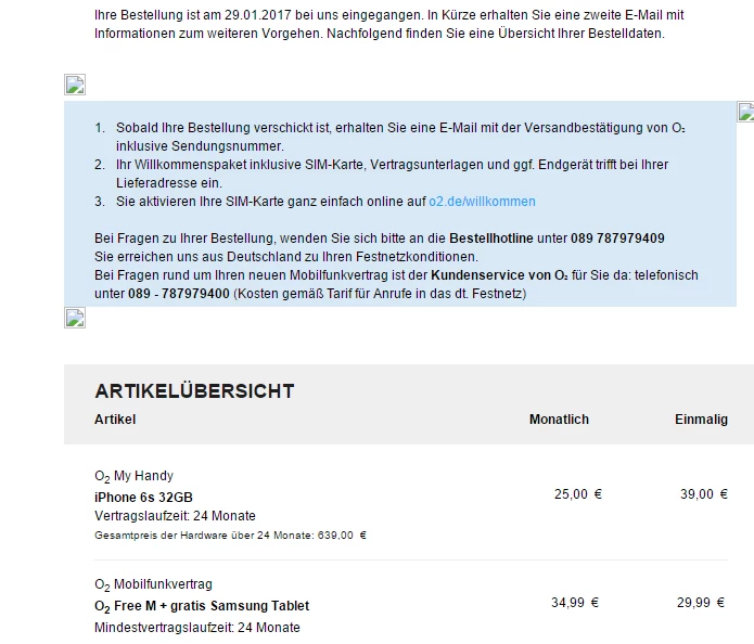 Ich bestellte Handy mit tarif Free M + Gratis Samsung Tab, 29.01.2017